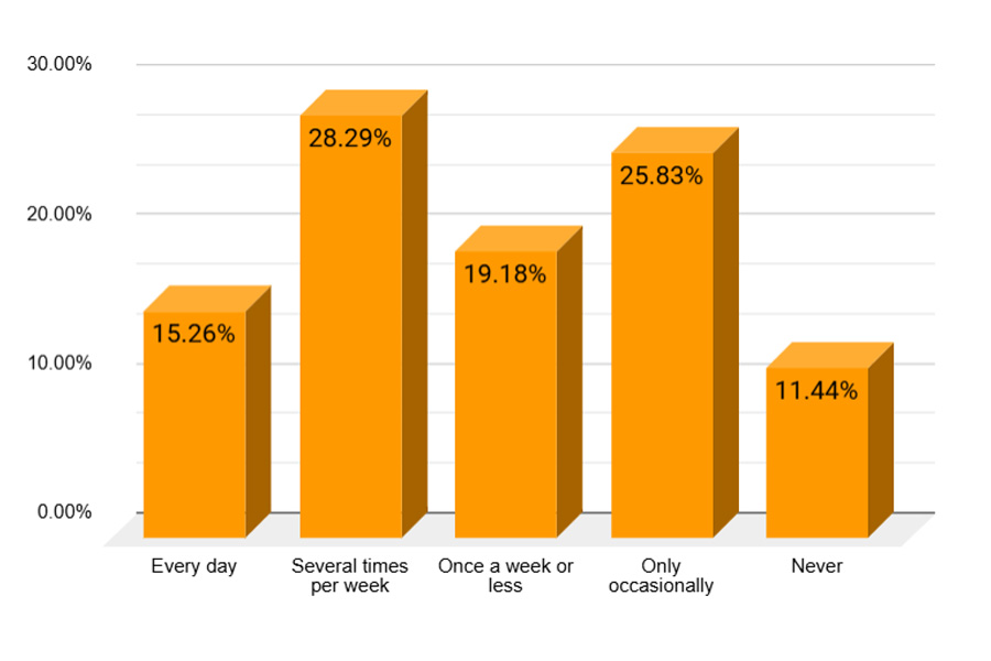 2. How often do you eat cold cereal for breakfast during the week? (Please select one)
